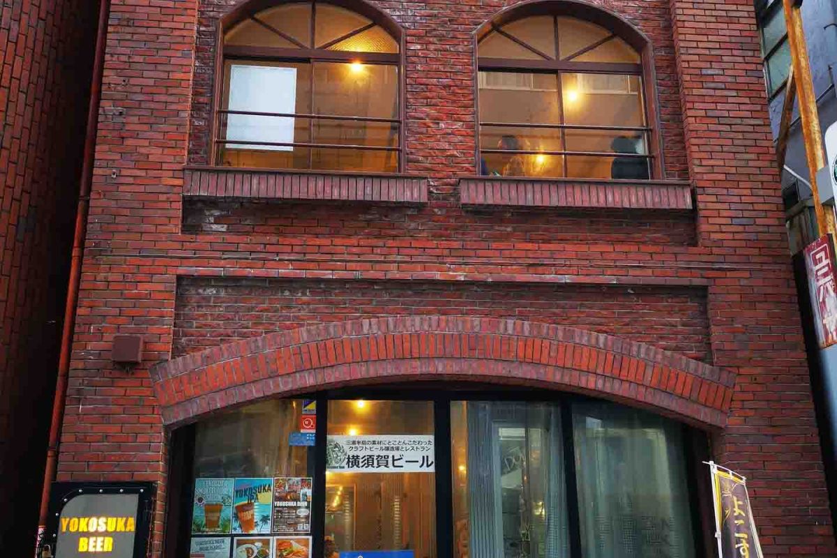 横須賀のどぶ板通りに面した醸造場。2Fがレストランになります。